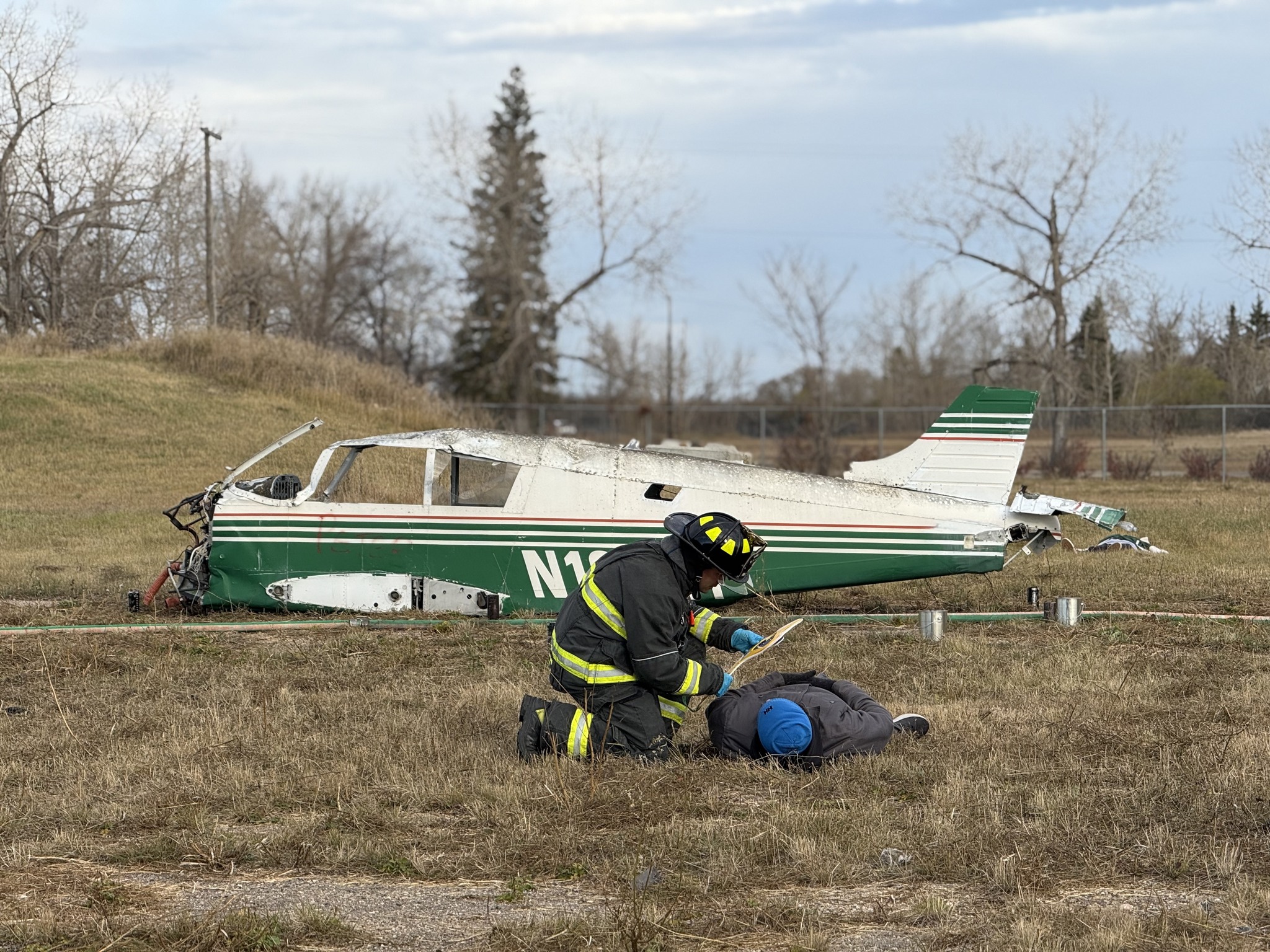 (City of North Battleford)The incident was staged with a downed small aircraft and multiple mock casualties. Volunteers from the North Battleford Comprehensive High School Drama Club were invited to help with the staging.