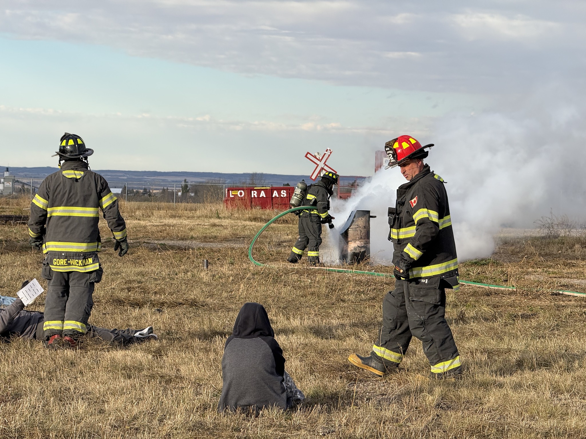 Multiple local agencies gathered to take part in a mock critical incident at the North Battleford Fire Department training grounds Thursday morning. The mock exercise is necessary to be completed every four years to maintain the regional airport’s Transport Canada certification requirements.